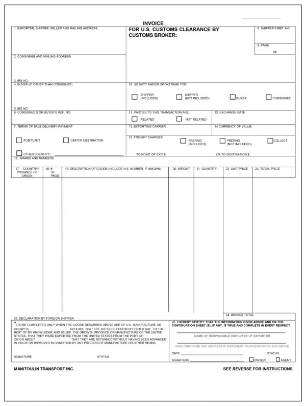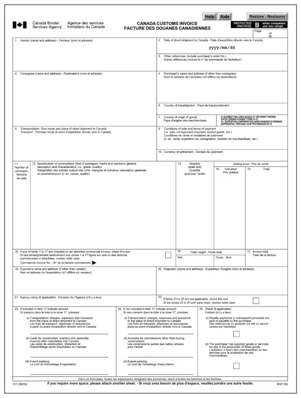 Customs Invoice Canada